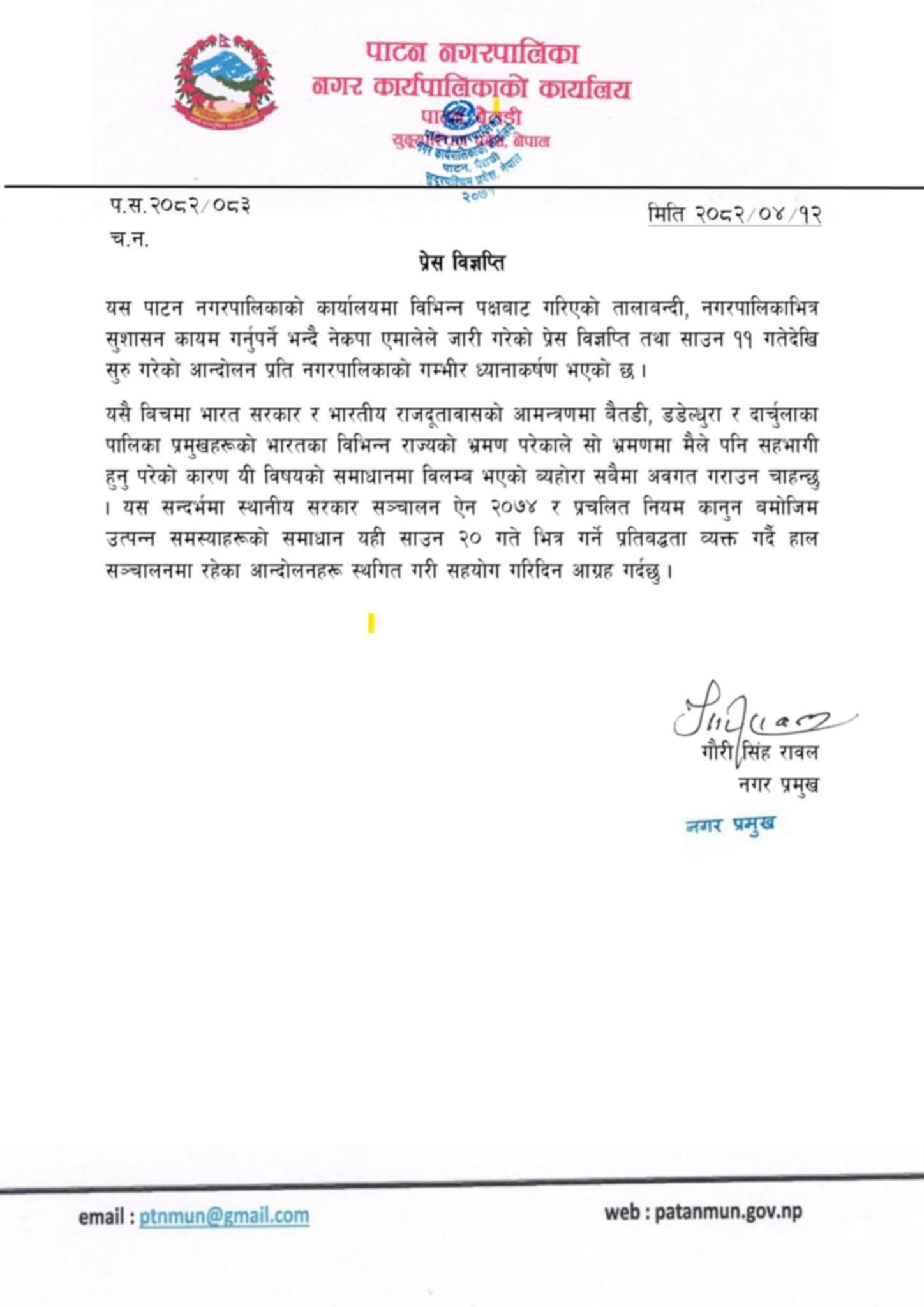 नगर प्रमुख रावलले जारी गरेको विज्ञप्ती